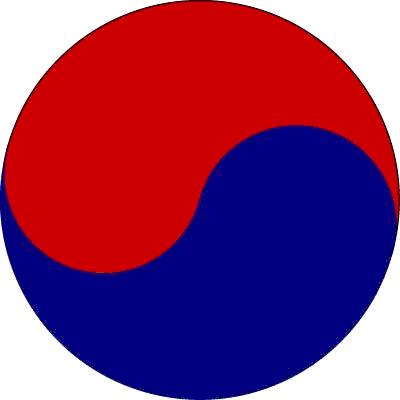 This symbol (from the Korean flag) is a divided circle, and it shows that ‘yin and yang’ are not in opposition. They only have meaning relative to each other. This symbol shows those dual meanings in balance, supporting each other, inseparable.