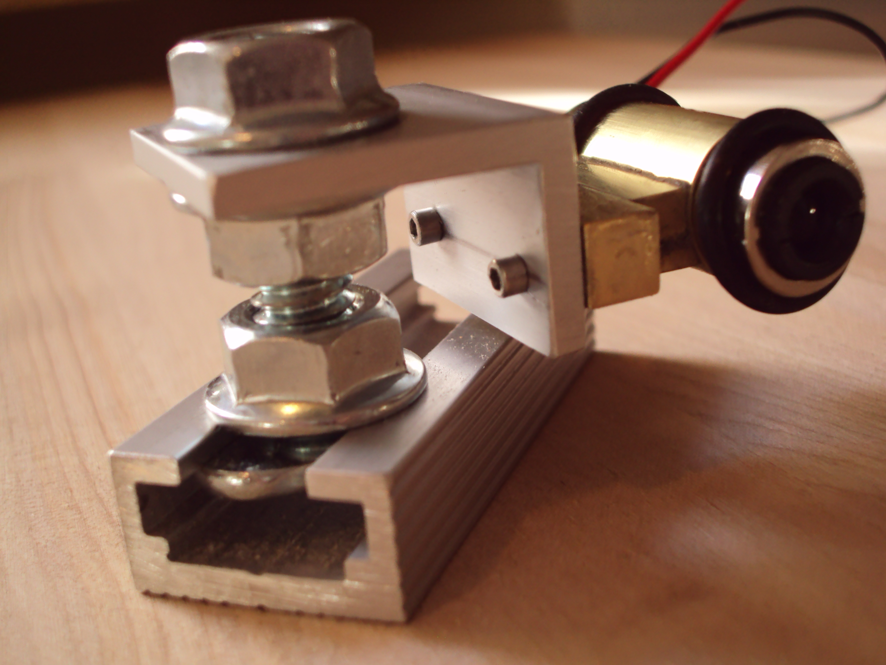 An early prototyping laser mount designed to fit to our frame design, with controls to accurately level the laser on the LLP multitouch surface.