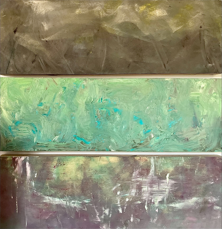 (2019), oil on board, 3 panels 24″ x 8″ each