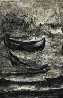 When those in power have no vision the world is given to the artists to try and bring solace to a damaged environment. Style Transfer transformations (2022) of an original oil paining by SK Choi, 36″ x 24″, 2014.