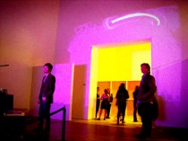 reflection on the wall interaction with the multi-touch screens see.saw installation view at the Illingworth Kerr Gallery, Calgary