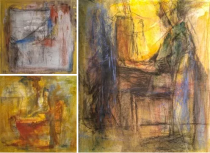 The drowned world (2019), oil on board, 3 panels 24″ x 8″ each
